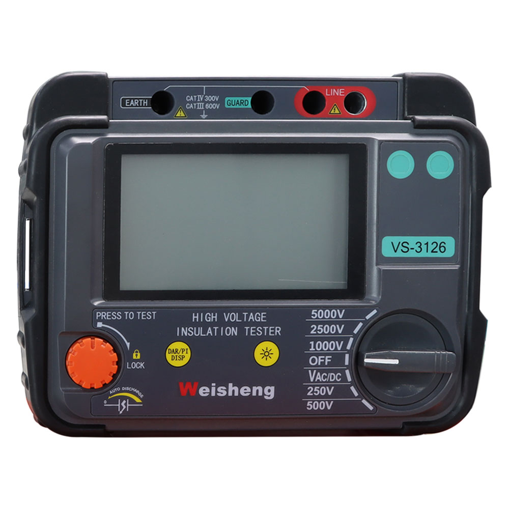 Weshine® VS-3126 là thiết bị chạy bằng pinMáy kiểm tra cách điện cao ápvới màn hình hồ quang kỹ thuật số và tương tự, được thiết kế để kiểm tra điện trở cách điện điện áp cao trong bảo trì và bảo dưỡng cáp, máy móc nhà máy quay, máy biến áp, thiết bị đóng cắt và các ứng dụng công nghiệp.