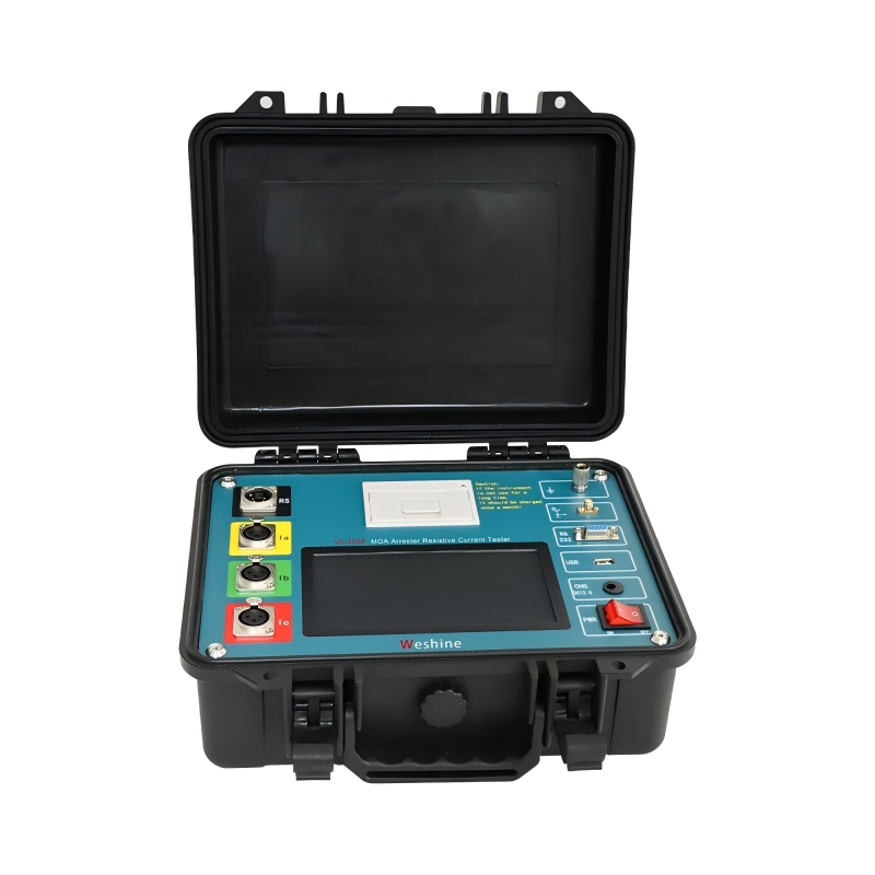 Máy kiểm tra dòng điện trở chống sét oxit kẽm Weshine® để kiểm tra thiết bị chống sét có thể kiểm tra các vấn đề về phát hiện sự cố mất điện hoặc trực tiếp hoặc thiết bị chống sét Zinc Oxide ở các cấp điện áp khác nhau và phát hiện kịp thời các khuyết tật nguy hiểm như giảm chấn của lớp cách điện bên trong và lão hóa van.
